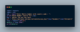 Like this way we can get the details of the phone numbers. Also you can create your own program with python. But the thing is you have to get the Api key to create this program. Get the Api key from https://numverify.com/ go to this site and click signup for free and get the api key.